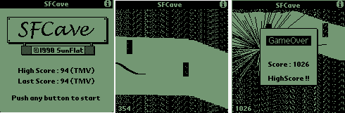 This new game for the Palm PDAs is simple, but addictive. You press down on any button to make the ribbon move upwards, and release the button to make it go down. As the ribbon accelerates the longer the button is pressed or released, the trick to getting high scores is to be sensitive enough on the buttons to be able to make it move in a straight line. |